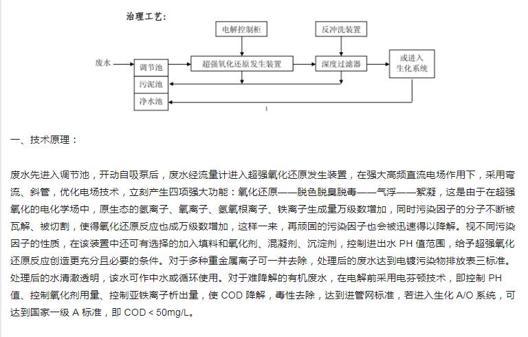 超強氧化還原廢水處理裝置(CYH法)處理各種有機廢水、各種重金屬廢水