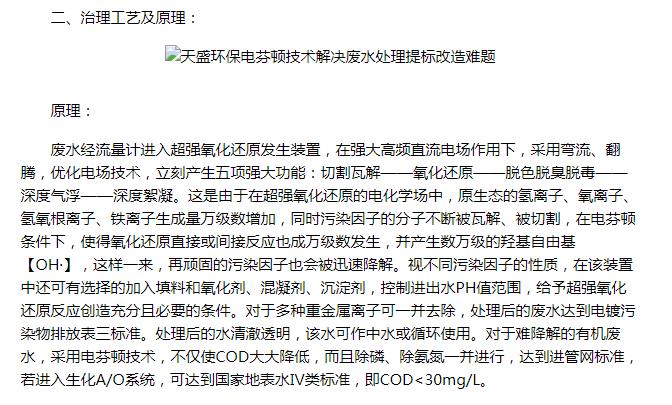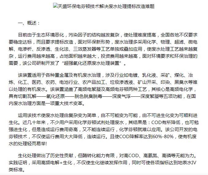 亞洲在線刊登:天盛環保電芬頓技術解決廢水處理提標改造難題